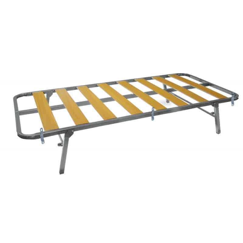 Somier de arrastre con patas y ruedas de apertura automática.