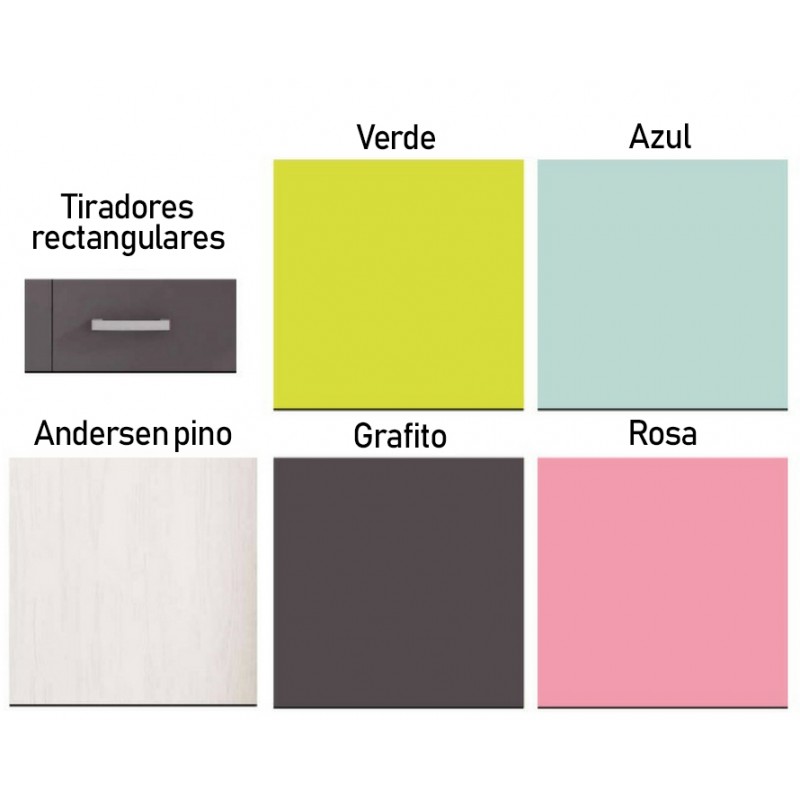 Color andersen pino, frentes verde,azul,grafito y rosa. kit