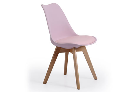 Asiento tapizado rosa, blanco, gris,celeste y negro.