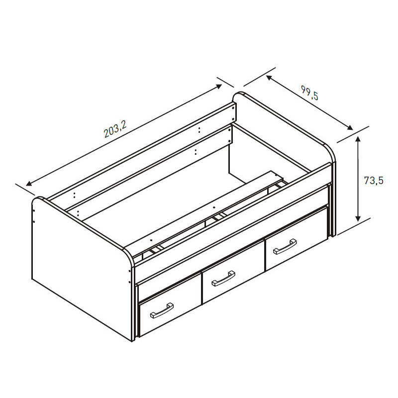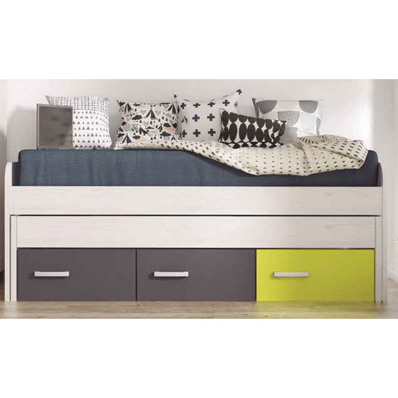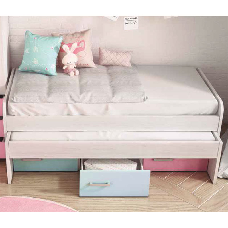 Cama compacta juvenil para colchón de 90*190 superior y colchón inferior de 90*180.Somieres y colchones no incluidos en el precio. Mueble kit.